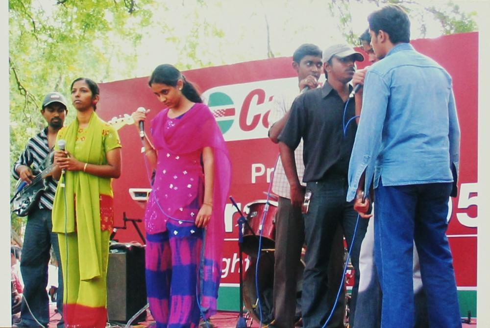 A student singing at a music competition at Saarang