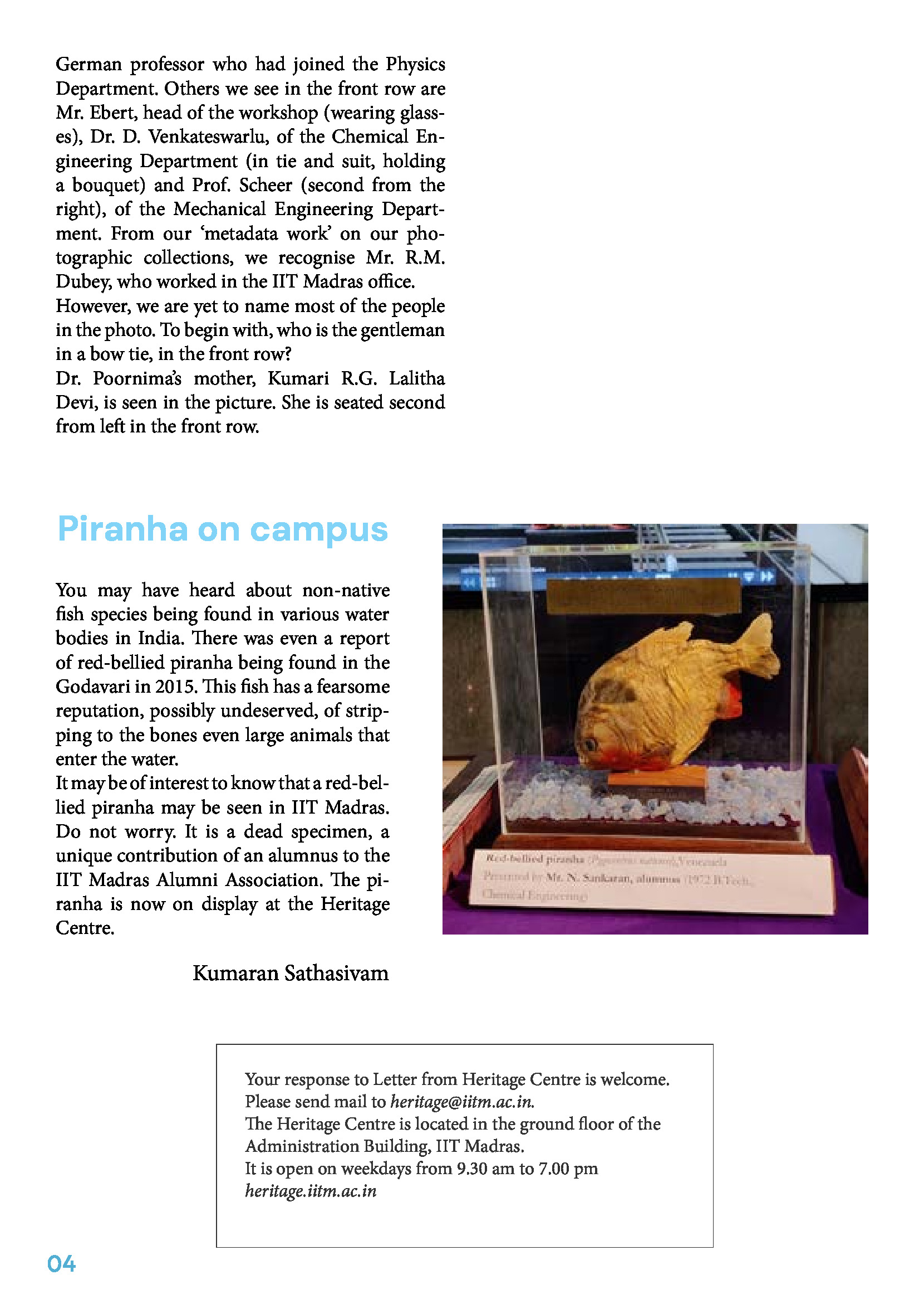 Download PDFYour response to Letter from Heritage Centre is welcome. Please send mail to heritage@iitm.ac.in